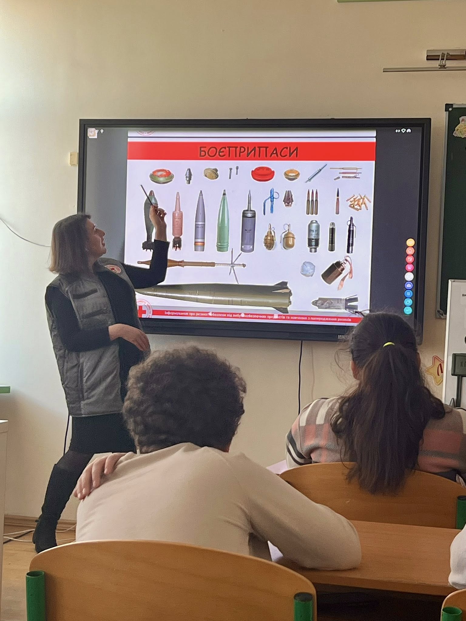Зустріч провела фахівчиня з мінної небезпеки Українського Червоного Хреста Яковина Ольга. Під час сесії учні дізналися про види вибухонебезпечних предметів, де вони можуть траплятися, а також отримали чіткі та важливі поради щодо того, як діяти у разі виявлення підозрілих предметів.
